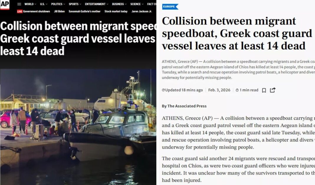 Το ABC τονίζει για την τραγωδία στη Χίο: «Σύγκρουση ταχύπλοου με μετανάστες και σκάφους της ελληνικής ακτοφυλακής με τουλάχιστον 15 νεκρούς».