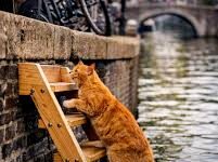 Σκαλοπάτια ζωής στα κανάλια του Άμστερνταμ για γάτες και ζώα